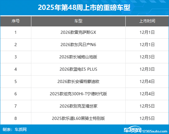回顾上周国内车市,雷克萨斯推出了新款雷克萨斯GX,在配置方面进行了小幅升级;别克带来了旗下至境家族的第二款车型――别克至境世家,新车定位中高端MPV,搭载“真龙”插混系统,满油满电综合续航1320km;日产全新中型车――日产N6也于上周上市,采用插混动力,CLTC纯电续航180km,将与比亚迪秦L等车型展开竞争。接下来我们将对上周上市新车汇总,看看有没有您喜欢的!