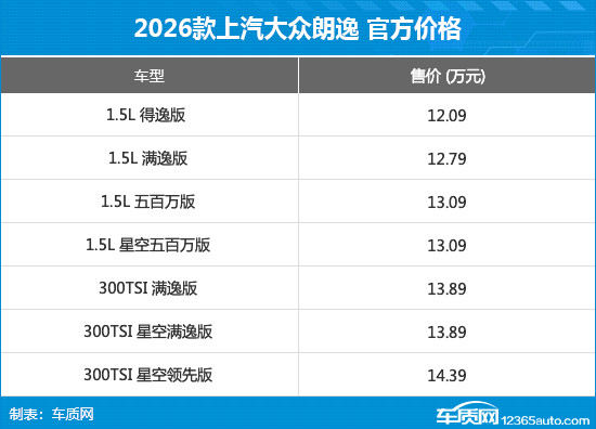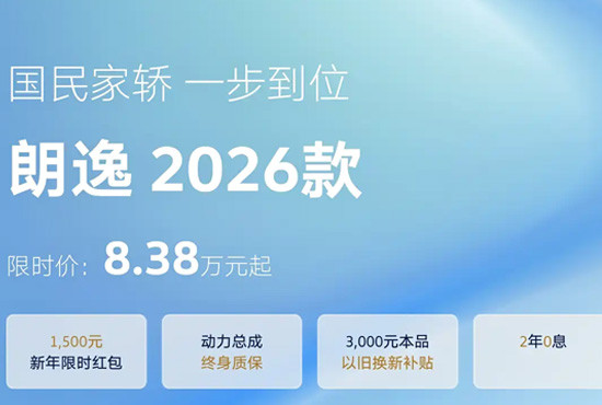 1月20日,2026款上汽大众朗逸正式上市,新车共推出7款车型,官方售价区间为12.09-14.39万元,限时价为8.38万元起。同时,官方还推出新年限时红包、2年0息等上市权益。