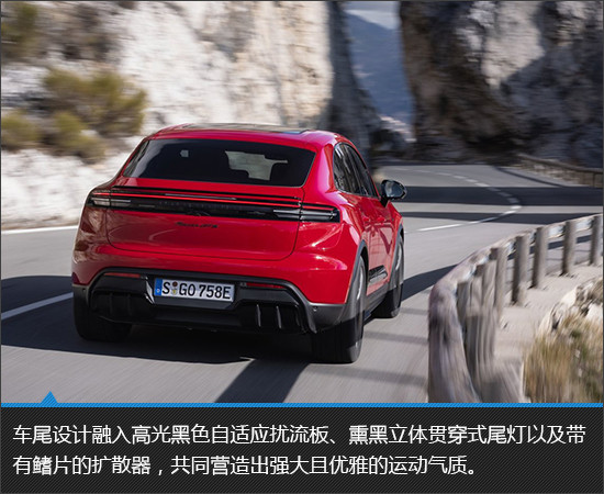 保时捷Macan EV GTS以鲜明的“黑化”设计语言为核心,塑造出极具攻击性与优雅感的暗黑运动美学。外观通过熏黑灯组、高光黑色装饰与锐利线条的运用,营造出张力十足的车身姿态。同时,全车设计注重空气动力学优化,风阻系数低至0.25Cd,实现了美学风格与功能效率的统一。