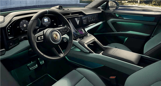 内饰部分,新车首发了Interior Style Package内饰风格套件,并且全系均可选装。其采用黑+绿的双拼内饰配色,头枕刺绣保时捷盾徽,大量使用绿色缝线和铝制饰板,座舱兼具豪华感与专属感。