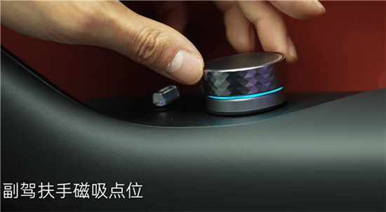 此外,该车还在内部设有一共10个磁吸点位,可以用来安放磁吸旋钮、纸巾盒、眼镜盒等,方便用户根据自身实际情况使用。