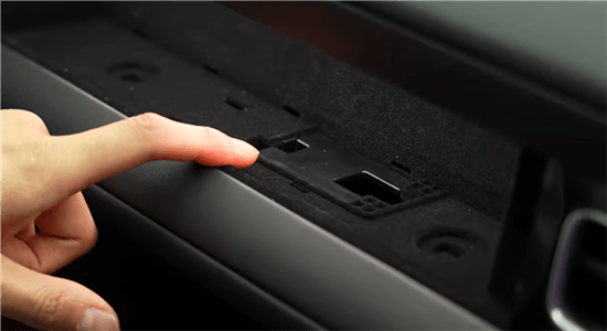 至于副驾灵感橱窗则更具创意,它外面设置的是一块钢化玻璃盖板,打开副驾手套箱后有个按钮,按下按钮之后就可以取下钢化玻璃,而后用户就能根据自己的需求和喜好进行DIY。