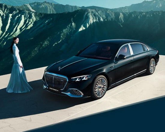 车身侧面,迎宾踏板可投射“MAYBACH”字样,新增20英寸锻造轮毂与21英寸金色定制轮毂,星徽车标始终正立。尾部采用分段式尾灯,并内嵌3枚星徽饰件,后扰流板采用双色饰条,经典双色车漆经一周手工喷涂,“极夜风格组件”新增海岳蓝色漆面。