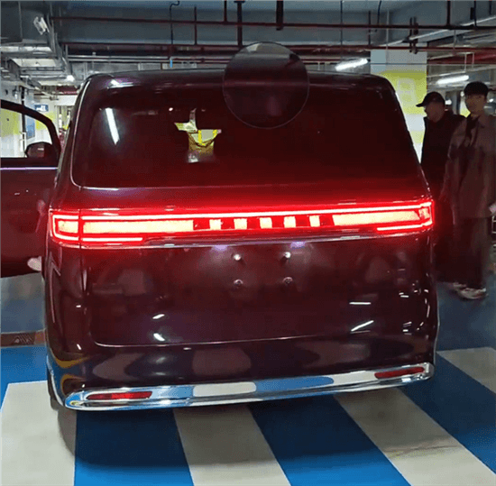 尾灯绝对是这款车最大的辨识度特征,其采用贯穿式,但并非简单的一条,灯腔里光源十分粗壮,且呈现类似尊界S800的星光璀璨的视觉效果,同时周围还设有环绕式灯带,中间被遮挡的区域则是智界的英文字母。