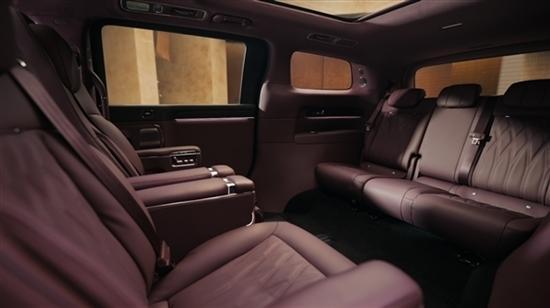 该车采用2+2+3的七座布局,车辆二排为双独立座椅,可以一键联动调节靠背、腿托、脚踏,达到1.05米的超长支撑,还支持旋转,可以实现45度迎宾,90度观景和180度对坐模式。