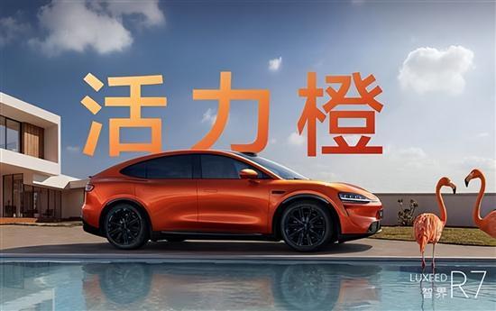 车身侧面线条流畅动感,得益于优秀的空气动力学设计,整车风阻系数仅为0.219Cd。尾部造型饱满圆润,溜背设计配合贯穿式尾灯,加上后备厢末端的“小鸭尾”扰流板,进一步强化了运动气息。为满足消费者日益多元的审美需求,新款智界R7新增活力橙和暗夜紫两款车漆配色,带来更丰富的个性化选择。