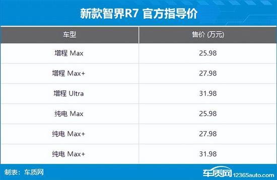 3月23日,新款智界R7正式上市。新车整体设计变化不大,新增2款外观配色,同时配置上得到升级。此次上市新车共推出6款配置,售价区间为25.98-31.98万元起。
