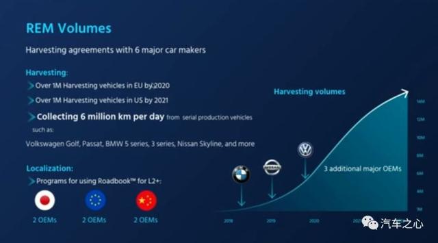 一个体现是,现在 Mobileye 已经能从大众、宝马和日产的车辆上采集传感器数据了。除此之外,Mobileye 还说服另外三家公司将数据采集权开放给 Mobileye。