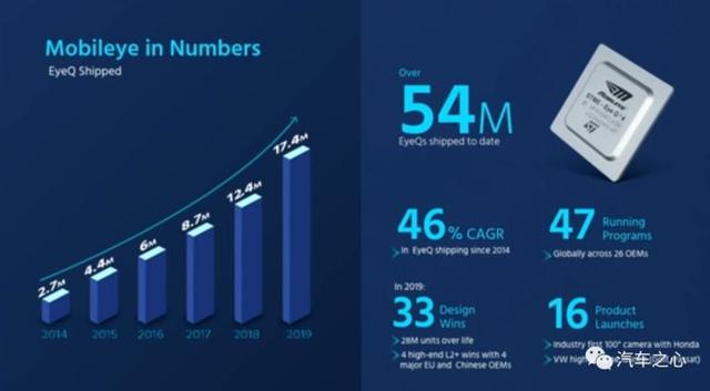 这也就意味着有 1740 万辆车配备了 Mobileye 的摄像头、芯片与软件。