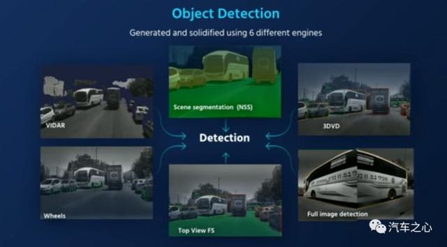 举例来说,为了探测车辆周边物体,Mobileye 甚至加入了一个拥有 6 种不同算法的套件: