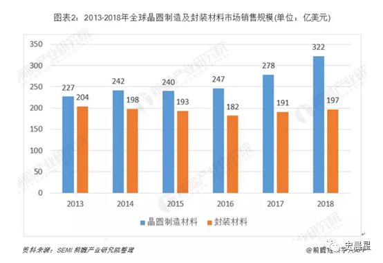 2018 年制造材料和封装材料的销售额分别为 322 亿美元和197 亿美元