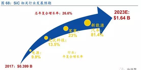 主要领域有智能电网、轨道交通、电动汽车、新能源并网、通讯电源等,4H-SiC 适用于微电子领域,通常用于高频、高温、大功率器件,6H-SiC 适用于光电子领域