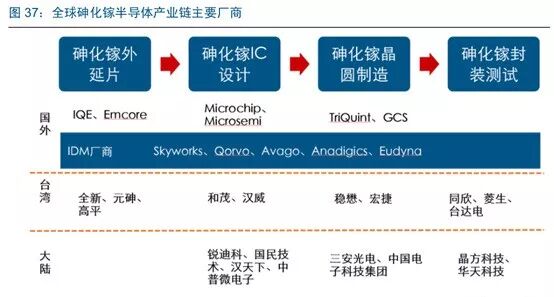 砷化镓产业链包括设计、衬底、外延、制造、封测、器件等