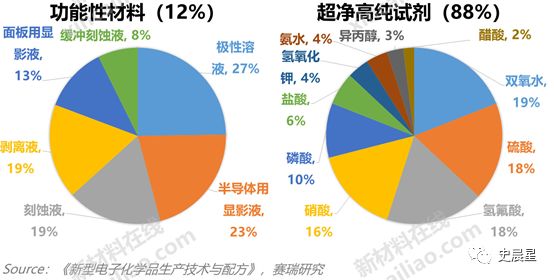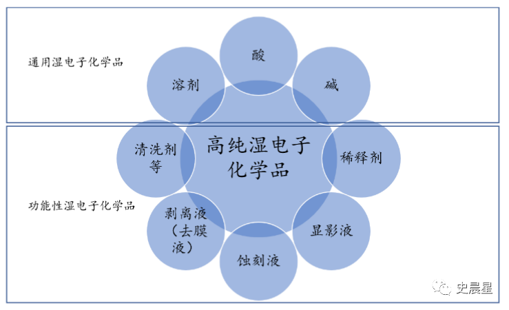 按用途可分为通用化学品(超净高纯试剂)和功能性化学品(以光刻胶配套试剂为代表)