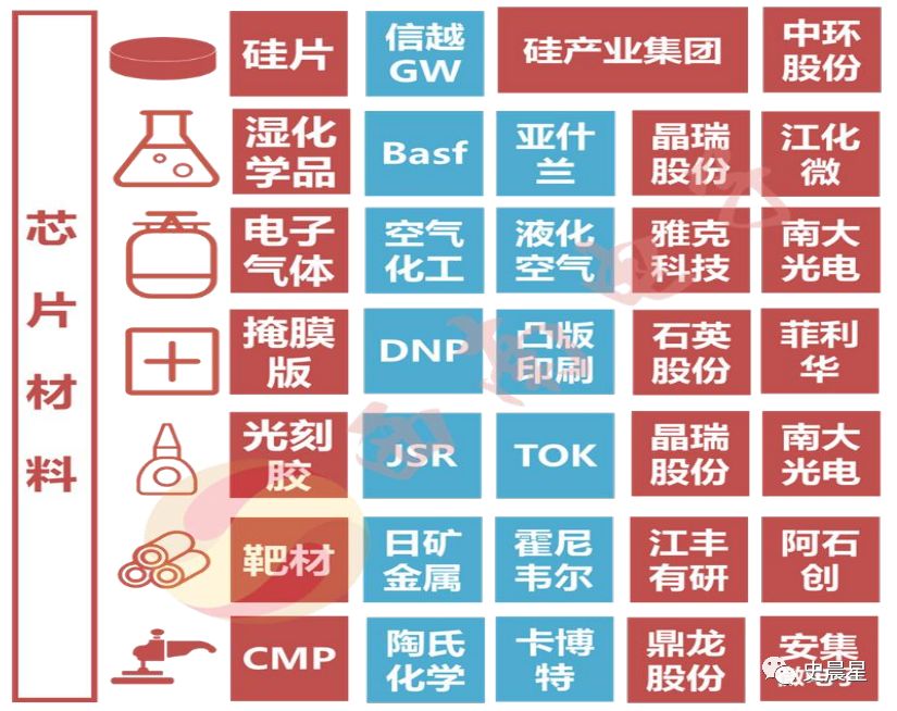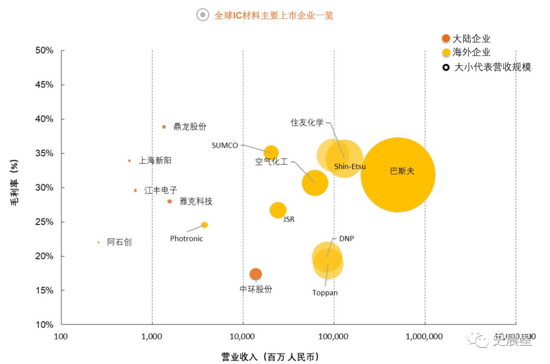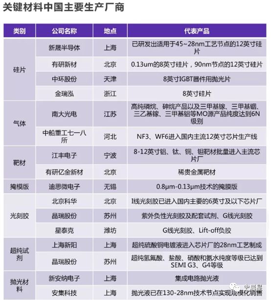 半导体材料行业细分领域众多,技术上存在较大差异,因此各个子行业龙头各不相同