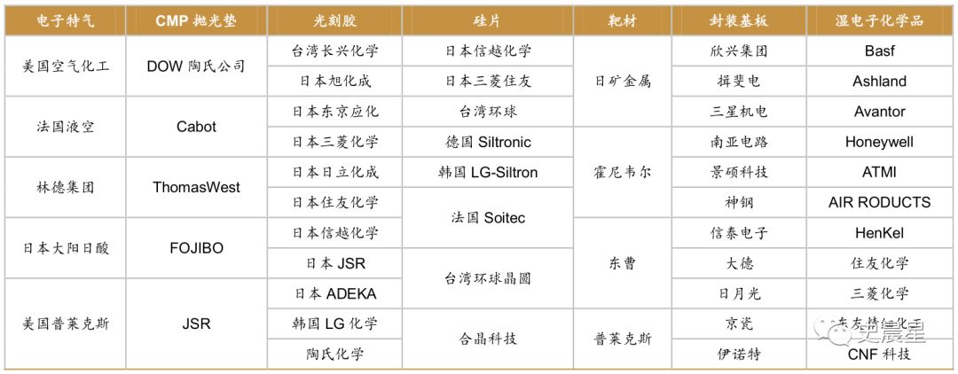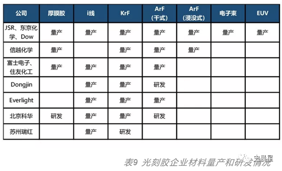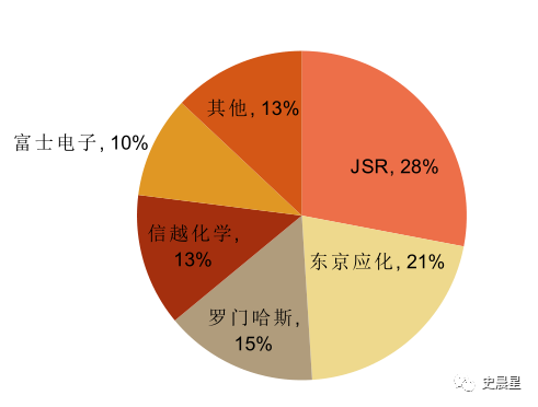 全球日本JSR合成橡胶、东京应化、住友化学、富士电子Fujifilm、信越化学、美国罗门哈斯、韩国东进等