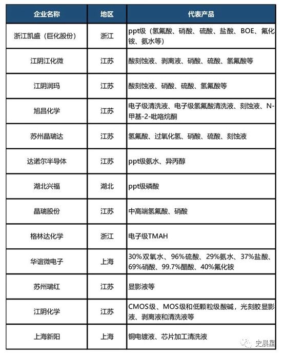 中国江阴江化微、苏州晶瑞、江阴润玛、浙江巨化、上海新阳等