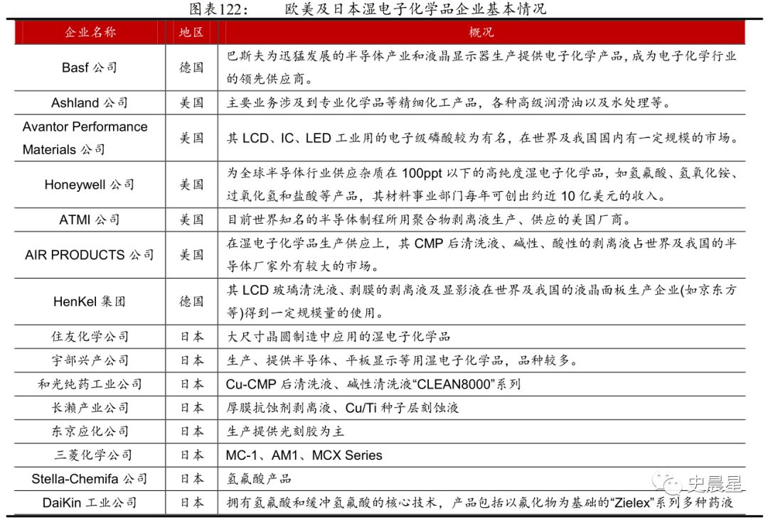 全球德国巴斯夫,美国Ashland亚什兰化学、Arch化学,日本关东化学、三菱化学、京都化工、住友化学,台湾联仕、鑫林,韩国东友精细化工等