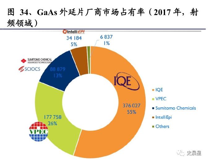 GaAs 外延:英国 IQE、台湾全新光电VPEC、日本住友化学、美国英特磊IntelliEPI等