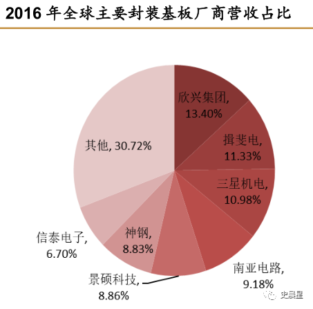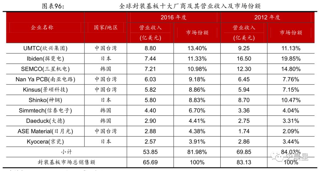 全球中国台湾、韩国、日本三地占据 90% 份额,全球前十大封装基板厂商占据 80%