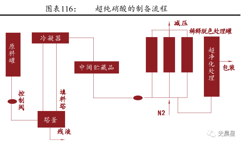 目前国内生产规模最大、品种最齐全、配套性最强的超高纯湿电子化学品专业集成服务提供商,建有年产 8 万吨的超高纯湿电子化学品生产基地,硝酸、氢氟酸、氨水等细分产品达到 G4、G5 行业水平