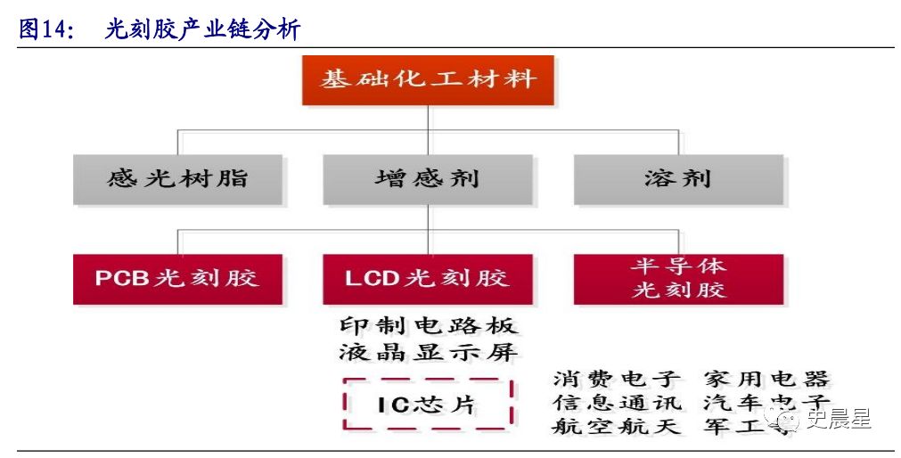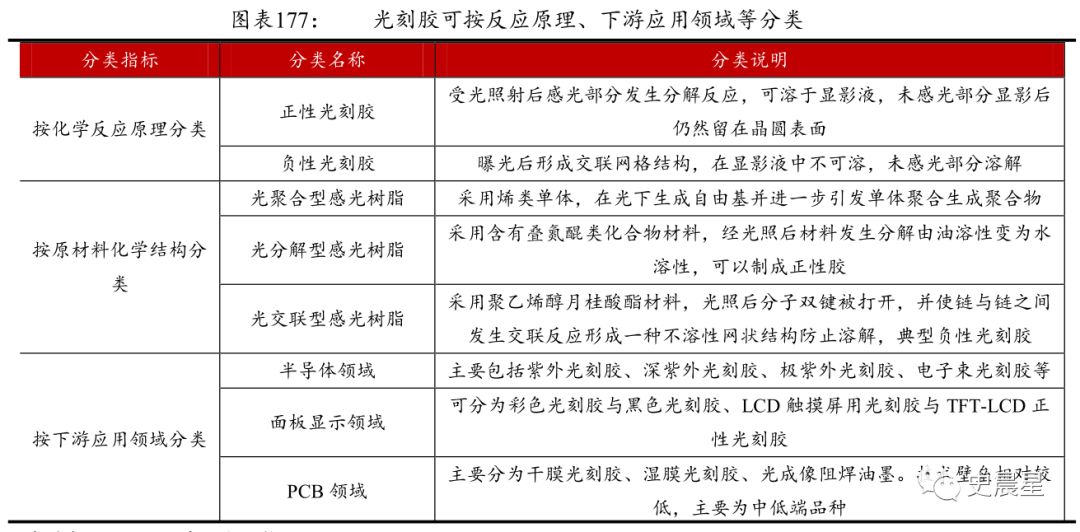 应用分类:PCB 印制电路板光刻胶、LCD液晶显示器光刻胶、半导体光刻胶三大类