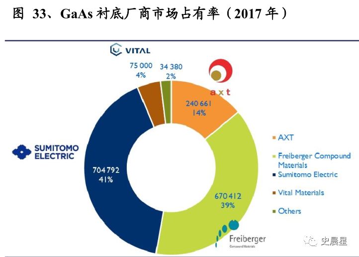 GaAs 衬底:日本住友电工、德国弗莱贝格Freiberg、美国 AXT等
