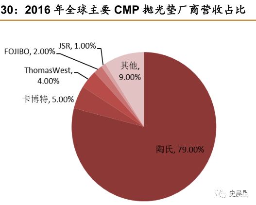 全球陶氏化学、嘉柏微电子、3M、卡博特、日本东丽、台湾三方化学等,中国成都时代立夫、湖北鼎龙、宁波江丰电子、苏州观胜半导体、深圳嵩洋微电子等