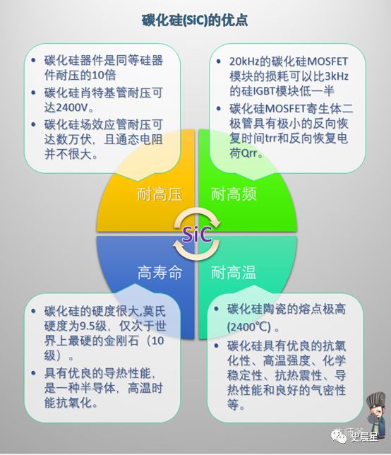 器件:美国科锐Cree、日本罗姆Rohm、三菱、德国英飞凌、ST意法半导体等,中国泰科天润、瀚薪、扬杰、科能芯等,详细介绍请持续关注本公众号“史晨星”(shichenxing1)
