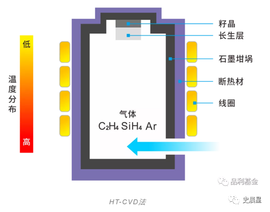 碳化硅升华熔点2700度,且没有液态,只有固态和气态,主要为Lely 改良法,有三种技术路线,物理气相运输法(PVT)、溶液转移法(LPE)、高温化学气相沉积法(HT-CVD),但效率极其缓慢,最快也仅每小时0.1-0.2mm的生长速度,因此长几天几夜也就几厘米