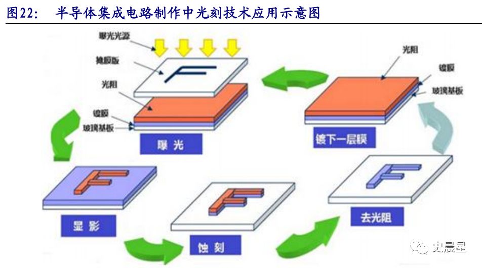 掩膜版在集成电路行业中的作用就像照相行业中的胶卷底片,主要负责图形“底片”的转移,即用光刻机在原材料上刻出相应的图形,整个光刻过程主要通过透光与非透光的方式进行图像复制