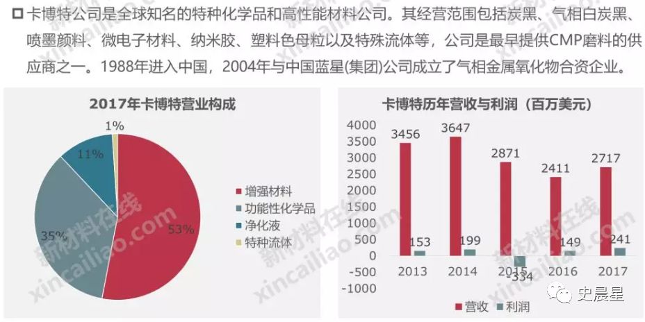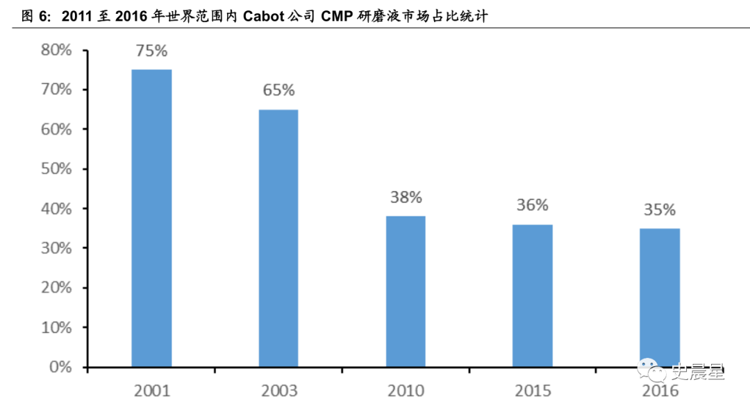 卡博特微电子 Cabot Microelectronics 是全球第一大抛光液和第二大抛光垫供应商,2004 年与中国蓝星(集团)公司成立了气相金属氧化物合资企业
