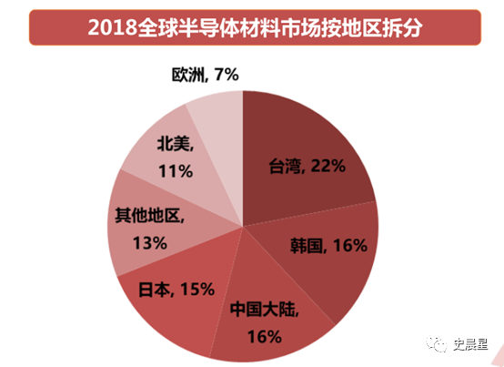 2018年,中国台湾消耗了 114 亿美金的半导体材料,连续 9 年成为全球最大半导体材料消费地区,韩国排名第二 87.2 亿美金,中国大陆排名第三 84.4 亿美金,Top3 合计超过一半
