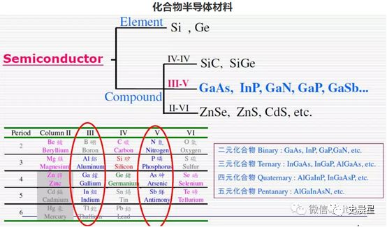 化合物半导体是指两种或两种以上元素形成的半导体材料,按照元素数量可以分为二元化合物、三元化合物、四元化合物等等,二元化合物半导体按照组成元素在化学元素周期表中的位置还可分为III-V 族、IV-IV 族、II-VI族等