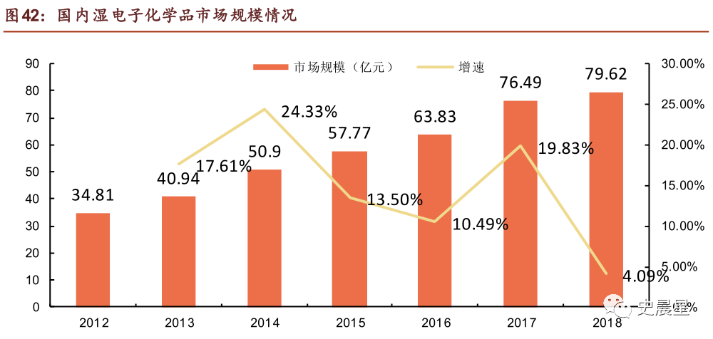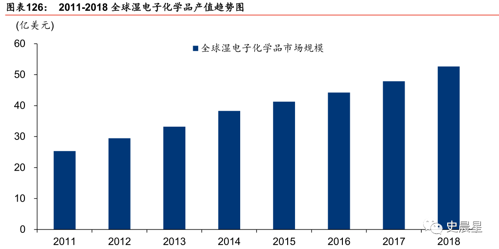 全球湿电子化学品市场规模 50 亿美元,中国 80 亿元