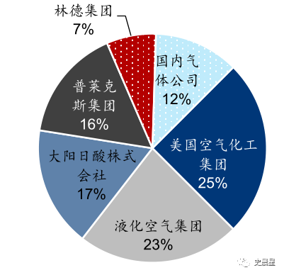 全球美国空气化工、普莱克斯、德国林德集团、法国液化空气、日本大阳日酸株式会社等