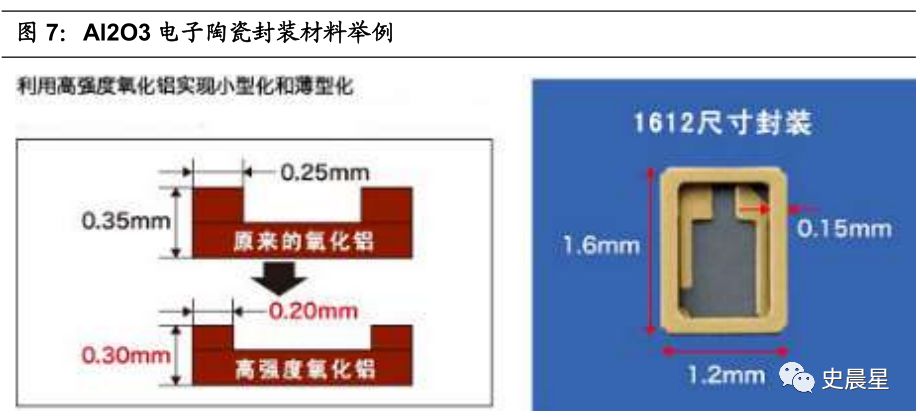 陶瓷封装材料用于承载电子元器件的机械支撑、环境密封和散热等功能,耐湿性好,良好的线膨胀率和热导率,在电热机械等方面性能极其稳定,但是加工成本高,具有较高的脆性,技术路线 BeO→Al2O3→AIN,全球市场规模 25 亿美元,中国 35 亿元,全球日本京瓷、住友化学、NTK 公司等,中国三环集团等