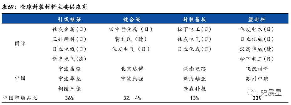 94. 分类:基板、框架、焊线、树脂、陶瓷等
