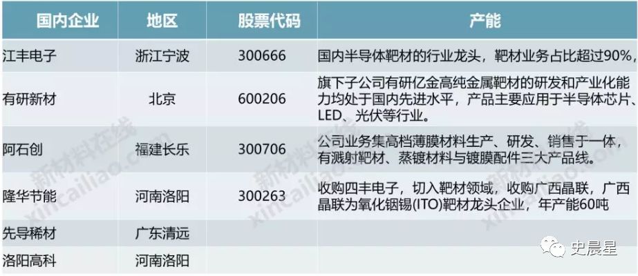 中国宁波江丰、北京有研、福建阿石创、河南隆华节能等