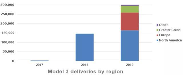 再看销量,2018年,特斯拉最主要的车型Model 3的销量不足15万辆。2019年,随着该车欧洲和中国等地上市,Model 3的销量大涨一倍多,达到30万辆,但美国市场的销量增幅不大。