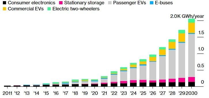 数据显示,那些能够承受短期压力的电池制造商将从以后的大量需求中受益,2040年之前,全球约31%的乘用车将是电池动力汽车,数量大约有5亿辆。