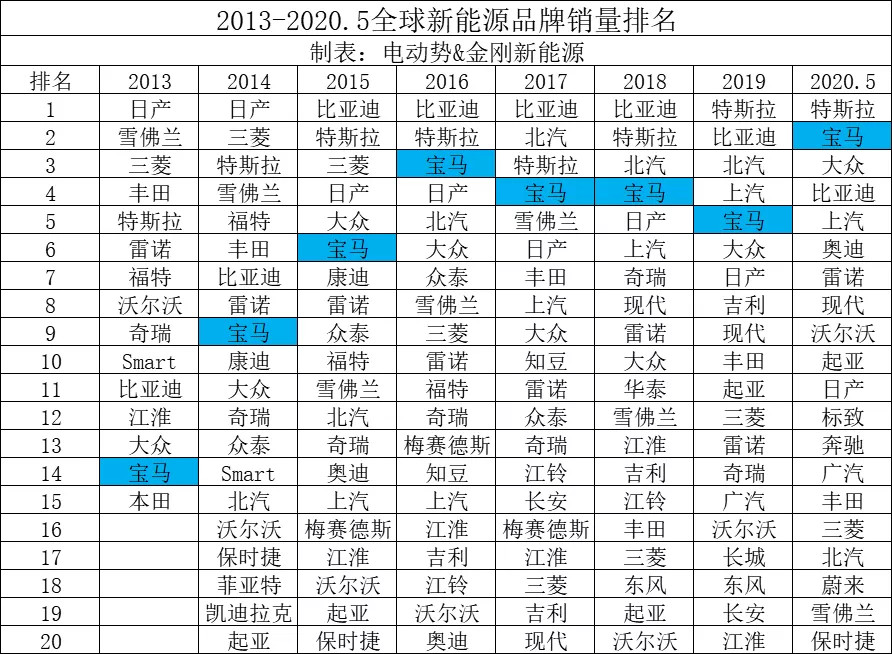 其实,宝马对插混技术的判断并没有错。凭借3系插混、5系插混等多款车型在全球市场的表现,宝马新能源车近几年的销量一直都不错,连续位居新能源销量品牌榜前五。