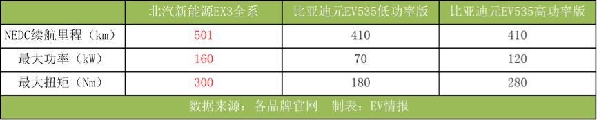 从以上的续航里程、动力及百公里加速等参数不难看出,EX3瞄准的正是比亚迪元,且以较大的实力胜出。