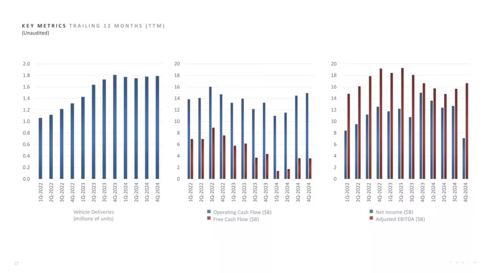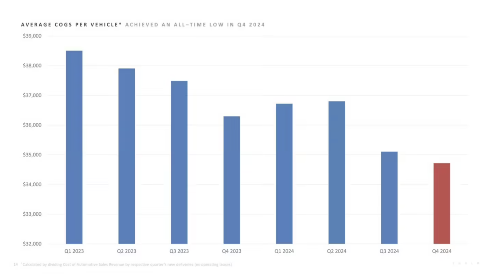 1月30日,特斯拉在财报电话会议上宣布,其车辆平均制造成本已降至3.5万美元以下,创下新里程碑。尽管2024年特斯拉全球销量出现十年来首次下滑,第四季度营收和净利润均低于预期,但公司对2025年仍持乐观态度,计划推出更经济的车型并推进
