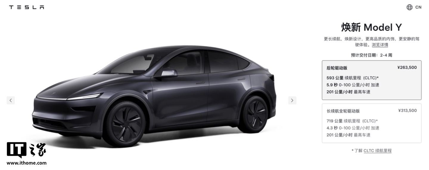电池做准备。目前,特斯拉中国官网显示,焕新款Model Y后轮驱动版预计交付时间为2-4周,长续航全轮驱动版预计交付时间为6-10周。