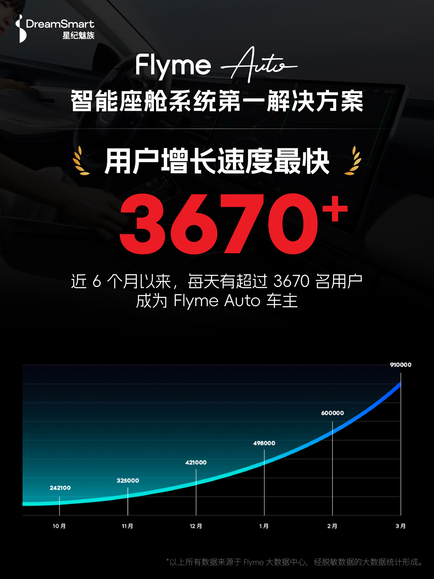 今日,星纪魅族在2025上海车展上发布了《Flyme Auto体验白皮书》,宣布其智能座舱系统Flyme Auto合作车型总销量已超过91万辆,成为搭载量最高的智能座舱系统。Flyme Auto近6个月以来,每天新增超过3670名用户,累计装车车型达到23款,用户增长速度在行业内领先。