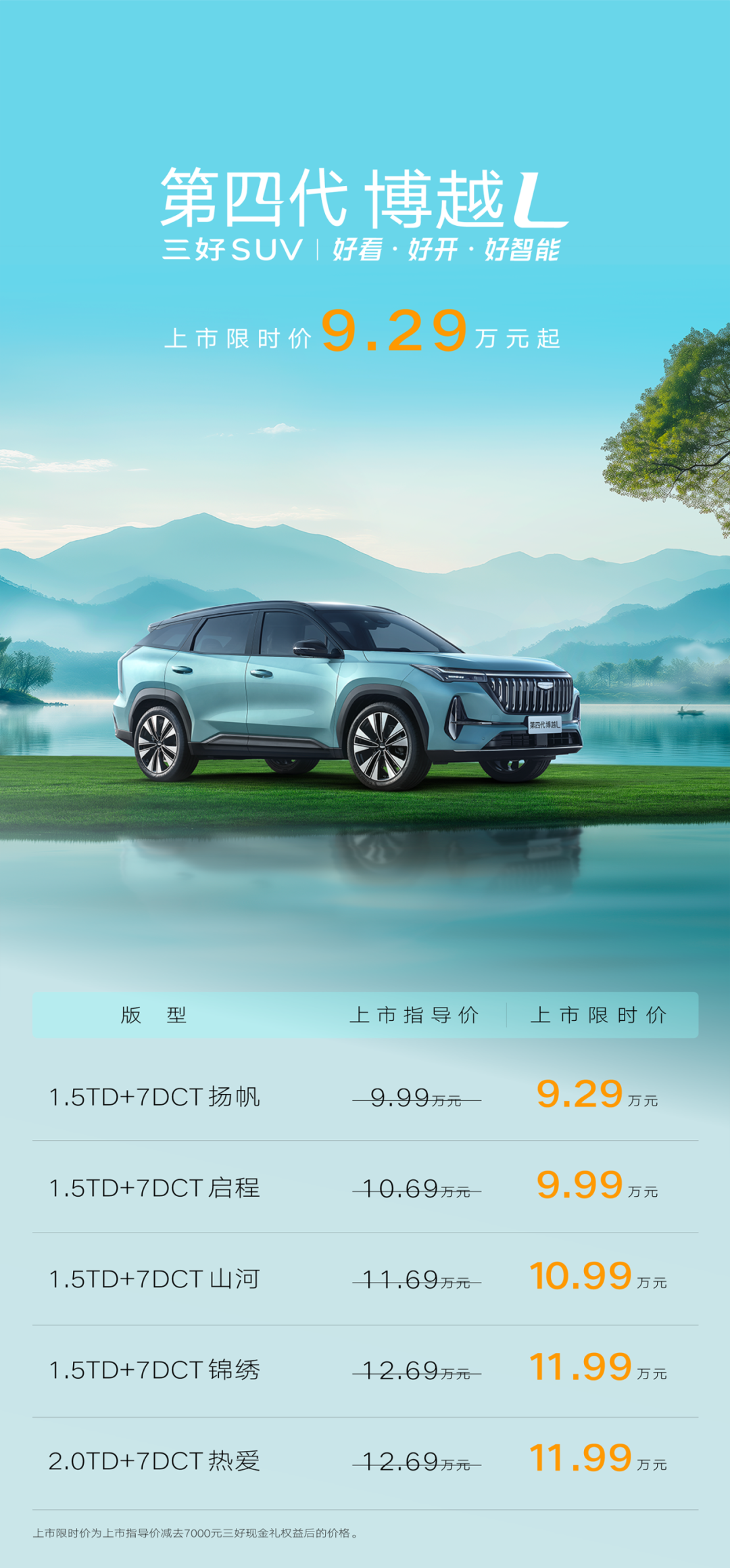 5月13日,吉利汽车宣布第四代博越L正式上市,限时起售价为9.29万元。新车提供六重权益,包括1000元订金抵8000元购车金,全系限时免费享价值至高10000元配置等。第四代博越L的车身尺寸为4730*1910*1710mm,轴距2785mm,采用新一代CMA架构和新一代GEEA3.0电子电气架构,配备“百川归海”前格栅、后贯穿灯、环抱式座舱。