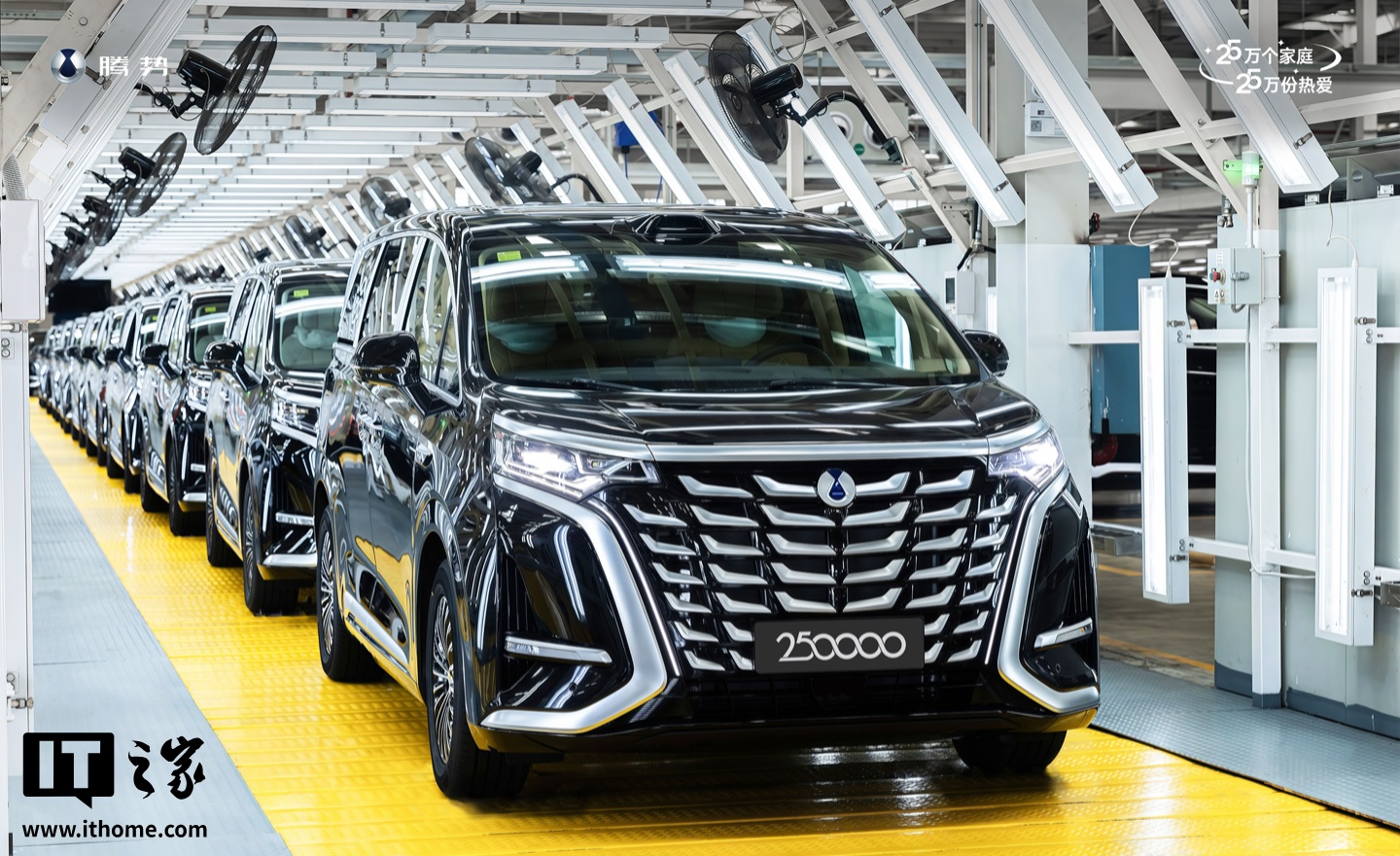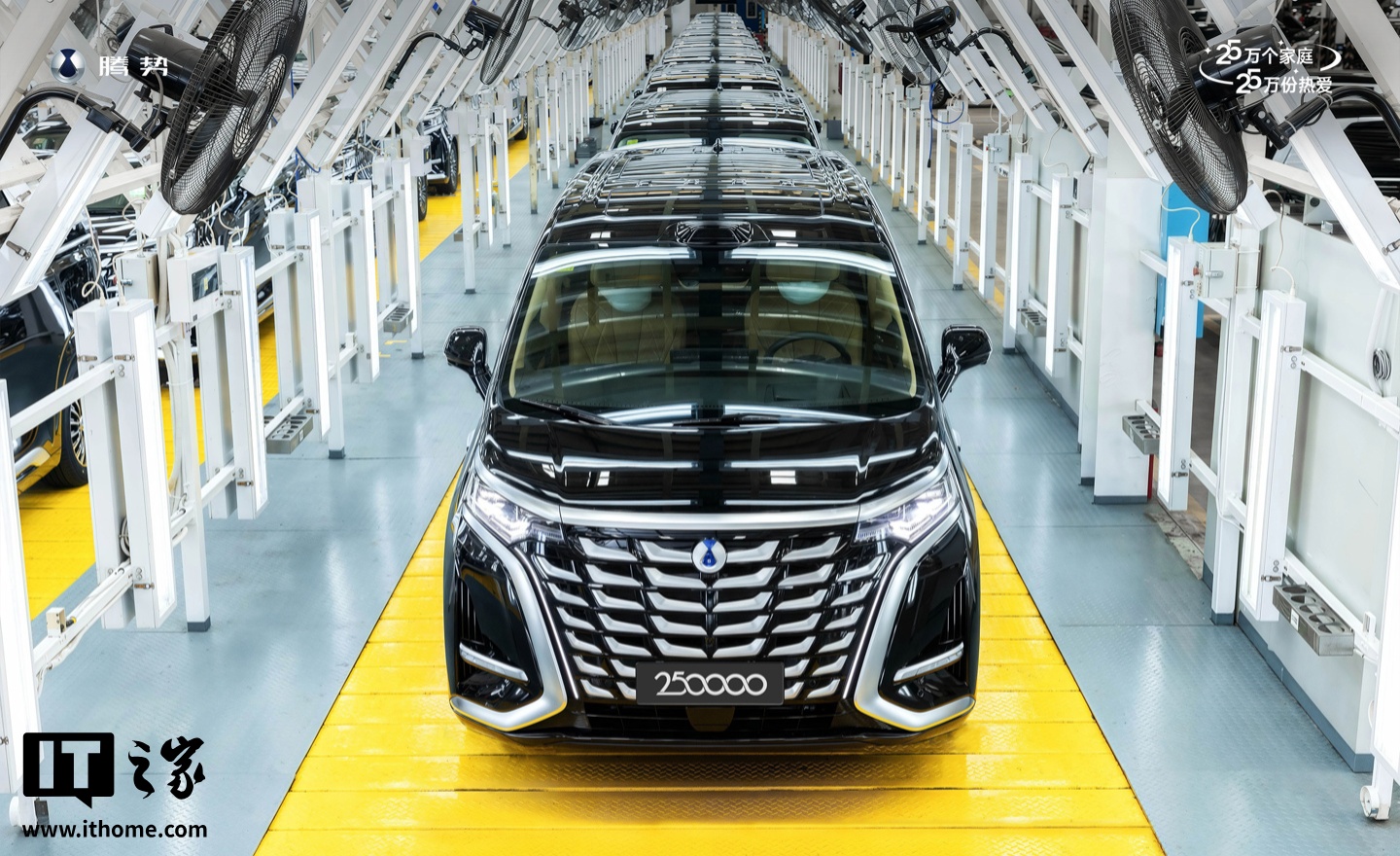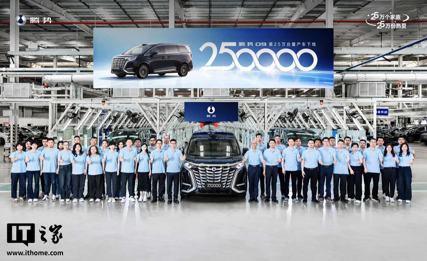 6月10日,比亚迪腾势D9第25万台量产车正式下线,成为全球首款达成25万台量产的新能源MPV。2025款腾势D9于去年12月在国内上市,提供DM-i超级混动版和纯电版共8个版本车型,官方指导价33.98~46.98万元,其中EV纯电版起售价为34.98万元。