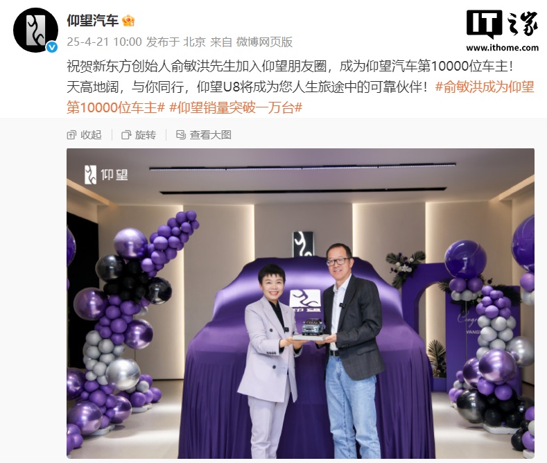 比亚迪此前已向多位知名企业家交付汽车,包括新东方创始人俞敏洪购买的仰望U8,得到App创始人罗振宇购买的腾势N7,以及汽车“玻璃大王”曹德旺所拥有的比亚迪汉EV。这些交付活动不仅展示了比亚迪在新能源汽车领域的高端定位,也反映了其产品在市场上的影响力和认可度。