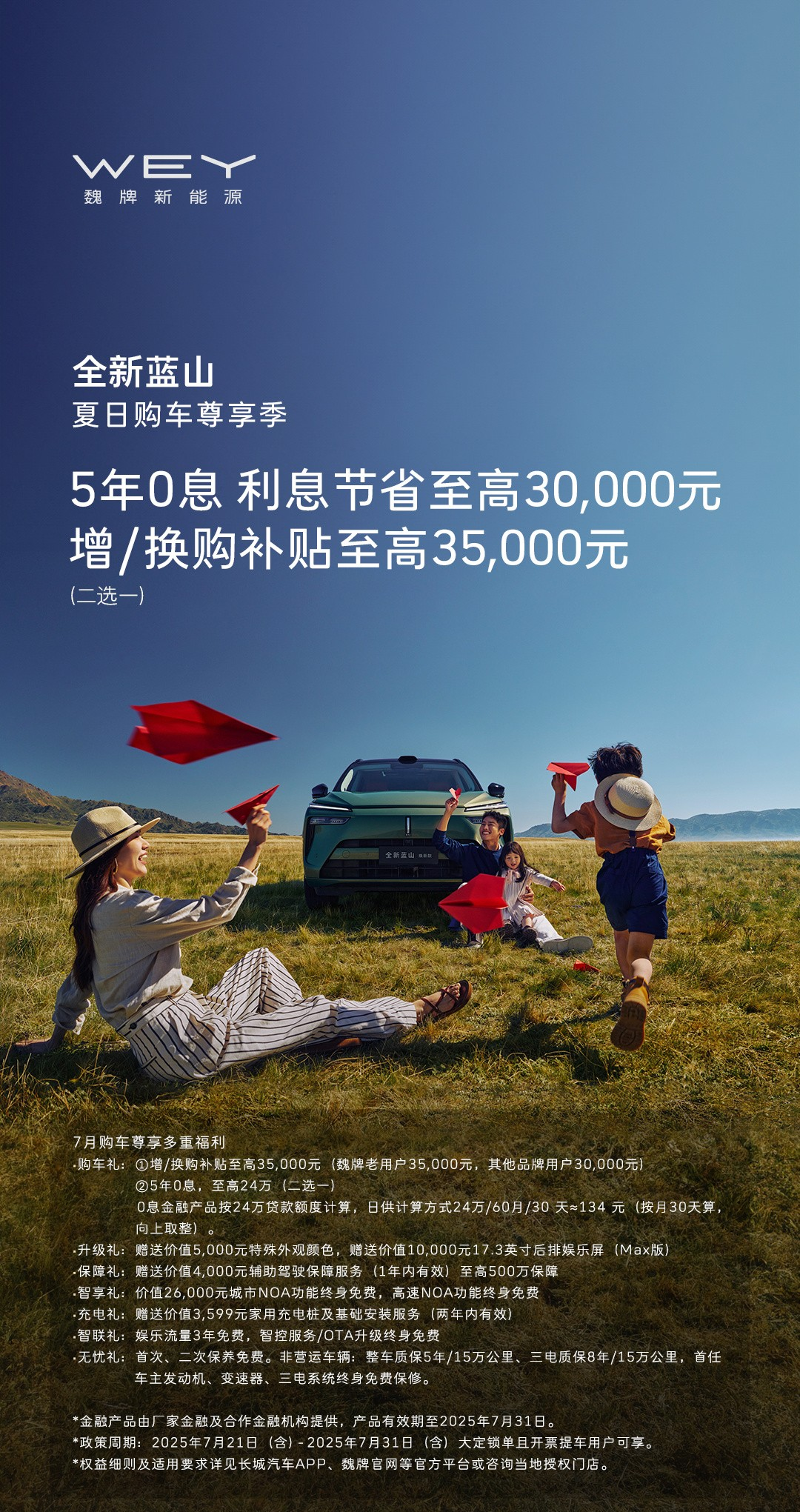 7月21日,长城汽车旗下魏牌新能源中大型SUV——魏牌蓝山迎来第10万辆新车下线。现款在售车型为蓝山焕新款,售价区间为29.98万至32.68万元。魏牌蓝山尺寸为5156/1980/1805mm,轴距3050mm,采用六座空间布局。配置上,新车全系搭载15.6英寸中控屏与副驾娱乐屏组成的双联屏,配备Coffee OS3.2车机系统,以及冷暖双用冰箱、副驾零重力座椅、17.3英寸后排娱乐屏、23个稀土强磁扬声器等。